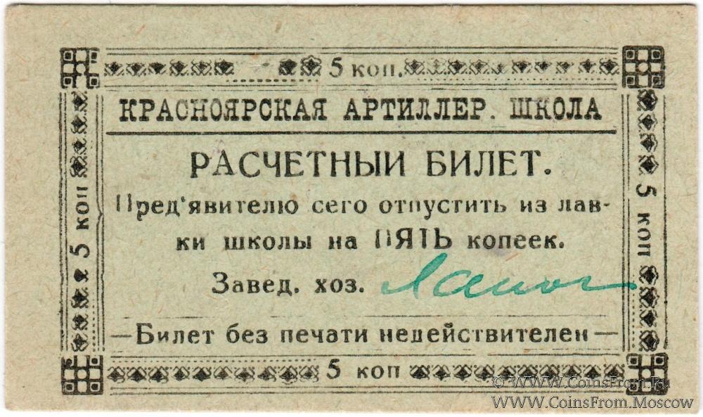 Печать круглая: "Красноярская артилерийская школа комсостава Р.К.К.А. *" (по большому кругу) / "Для хозяйственных и денежных документов" (по малому кругу) / Герб РСФСР (по центру) и надптсью вокруг "РОССИЙСКАЯ СОЦ. ФЕДЕР. СОВЕТ. РЕСП."