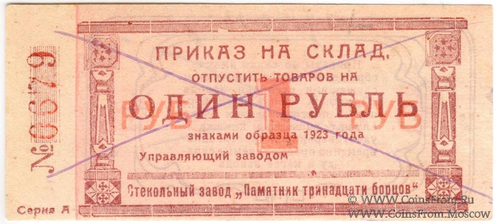 Приказ на склад. Цифры номинала прямые. Стекольный завод "Памятник 13 борцов".