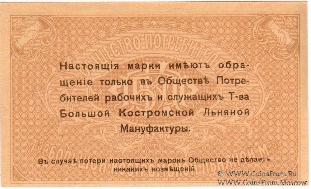 Марка без даты. Общество потребителей рабочих и служащих т-ва Большой Костромской льняной мануфактуры.