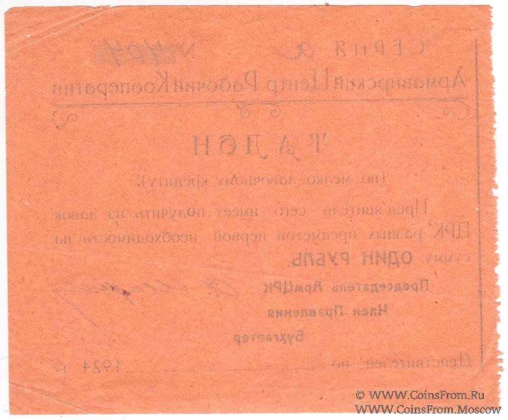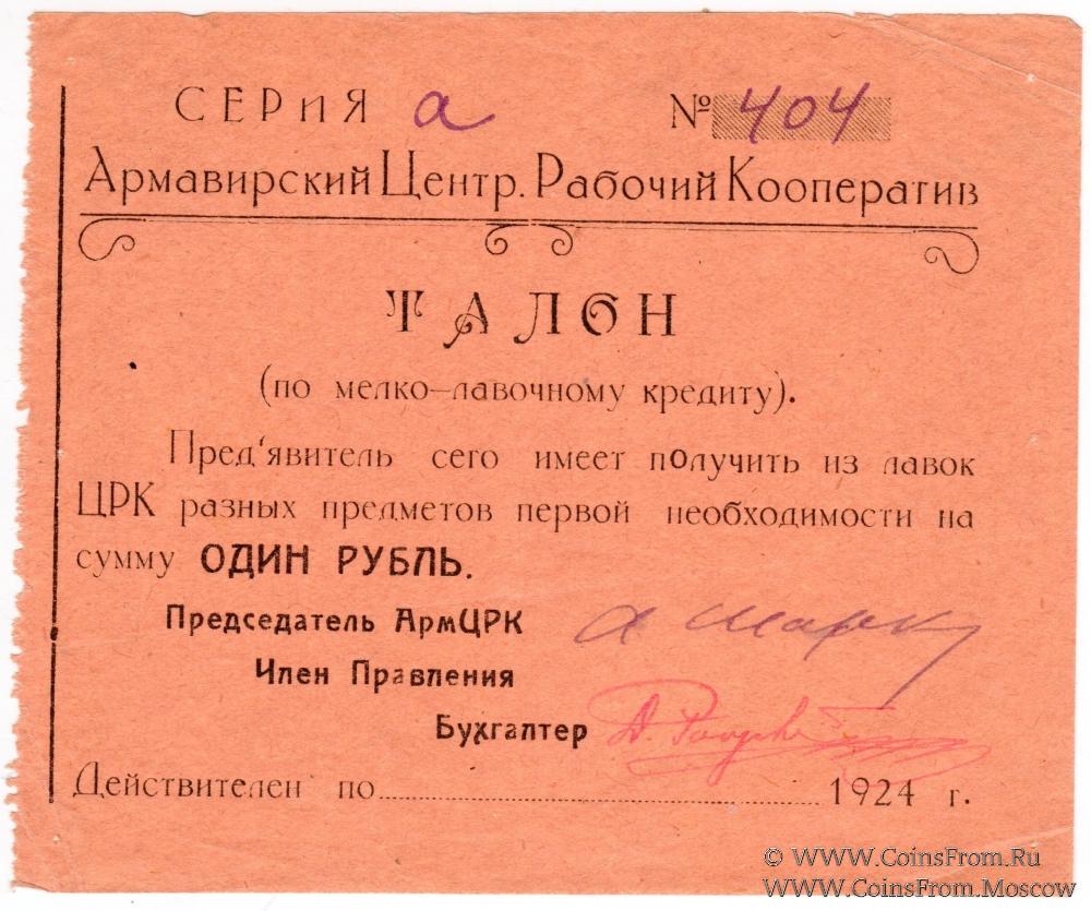 Талон. Без печати, с подписями ответственных лиц. Армавирский Центральный Рабочий Кооператив.