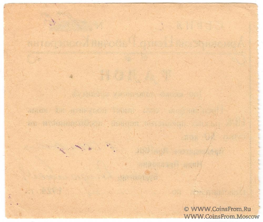 Талон. Бланк с оттиском печати ЦРК, подписями ответственных лиц. Армавирский Центральный Рабочий Кооператив.