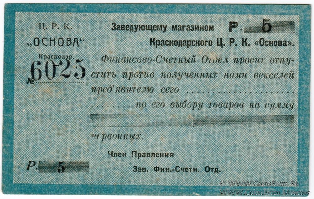 Бланк без даты (1923 г.). Номер 4-значный. Краснодарский Ц.Р.К. "Основа".