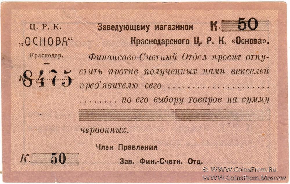 Бланк без даты (1923 г.). Номер 4-значный. Краснодарский Ц.Р.К. "Основа".