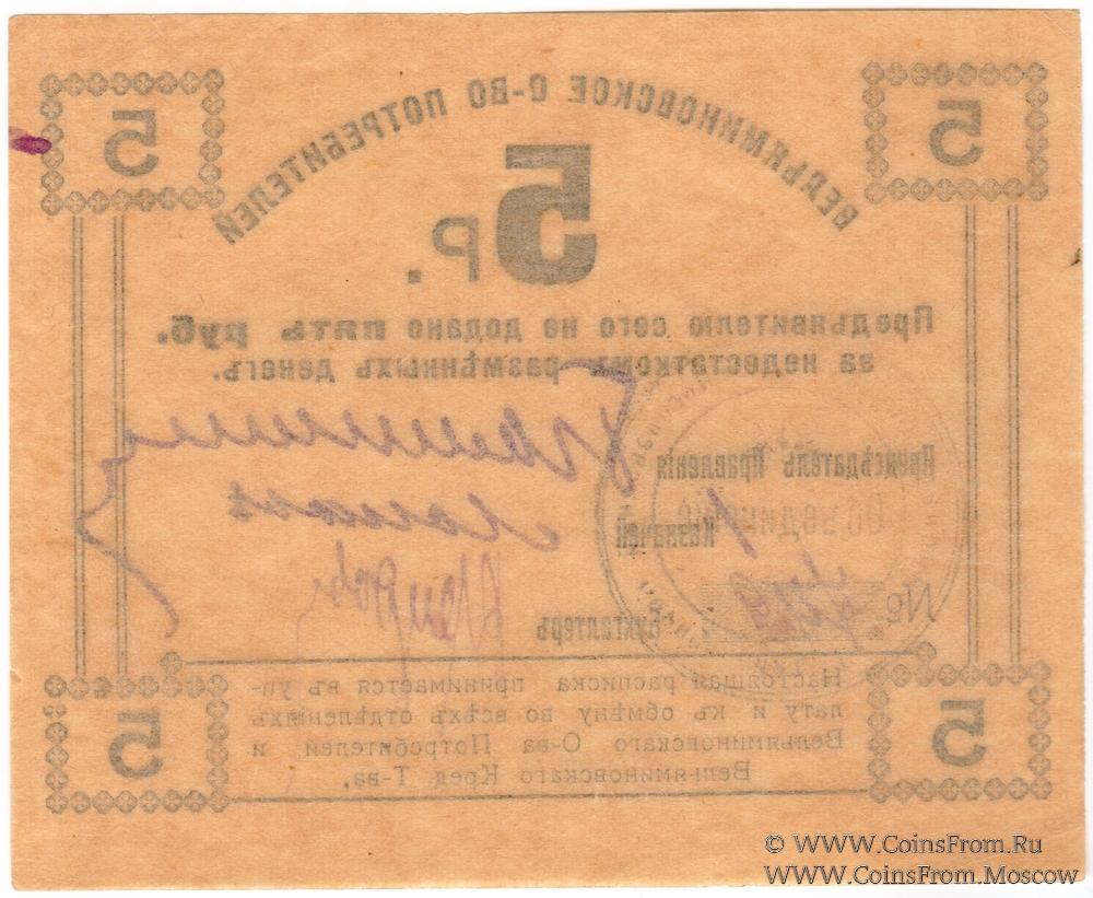 Расписка без даты. Цифры номинала в прямоугольниках. Вельяминовское Общество Потребителей.
