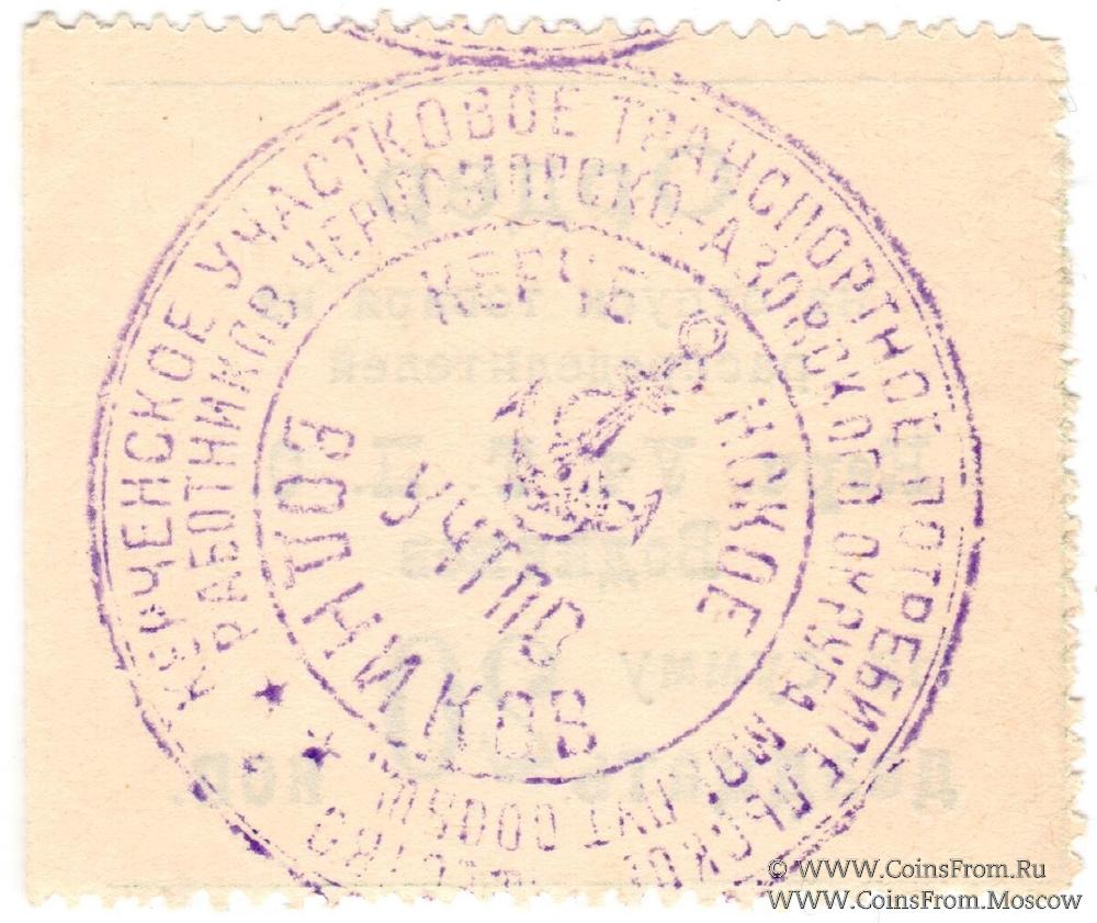 Ордер без даты с печатью Общества на реверсе. Рамка и зубцовка с 3-х сторон. Керч. Уч. Т.П.О. Водников.