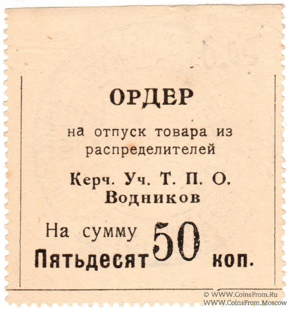 Ордер без даты с печатью Общества на реверсе. Рамка и зубцовка с 3-х сторон. Керч. Уч. Т.П.О. Водников.