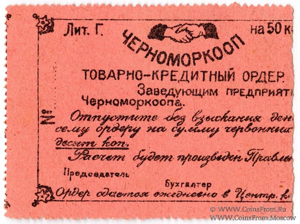 Товарно-кредитный ордер без даты (1923 г.). Литера Г. ЧЕРНОМОРКООП.