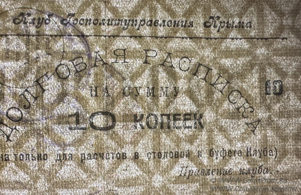 Долговая расписка без даты. Второй выпуск. На листках паспортных книжек. Коричневая. Водяной знак. Клуб Госполитуправления Крыма.