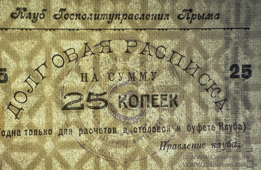 Долговая расписка без даты. Второй выпуск. На листках паспортных книжек. Бежевая. Водяной знак. Клуб Госполитуправления Крыма.