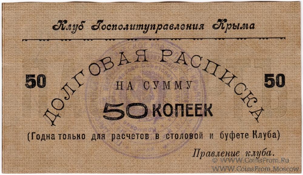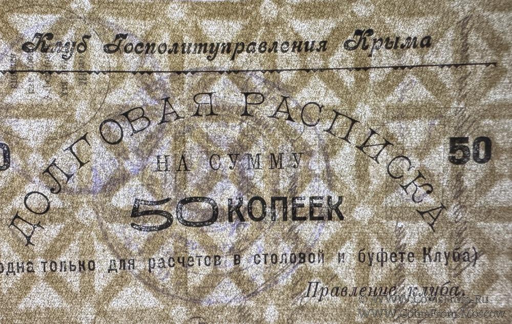 Долговая расписка без даты. Второй выпуск. На листках паспортных книжек. Бежевая. Водяной знак. Клуб Госполитуправления Крыма.