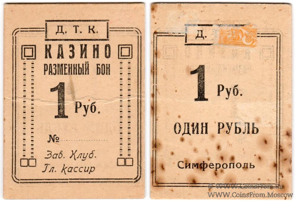 Разменный бон без даты (1924 г.). Кремовый оттенок. Казино. Д.Т.К.