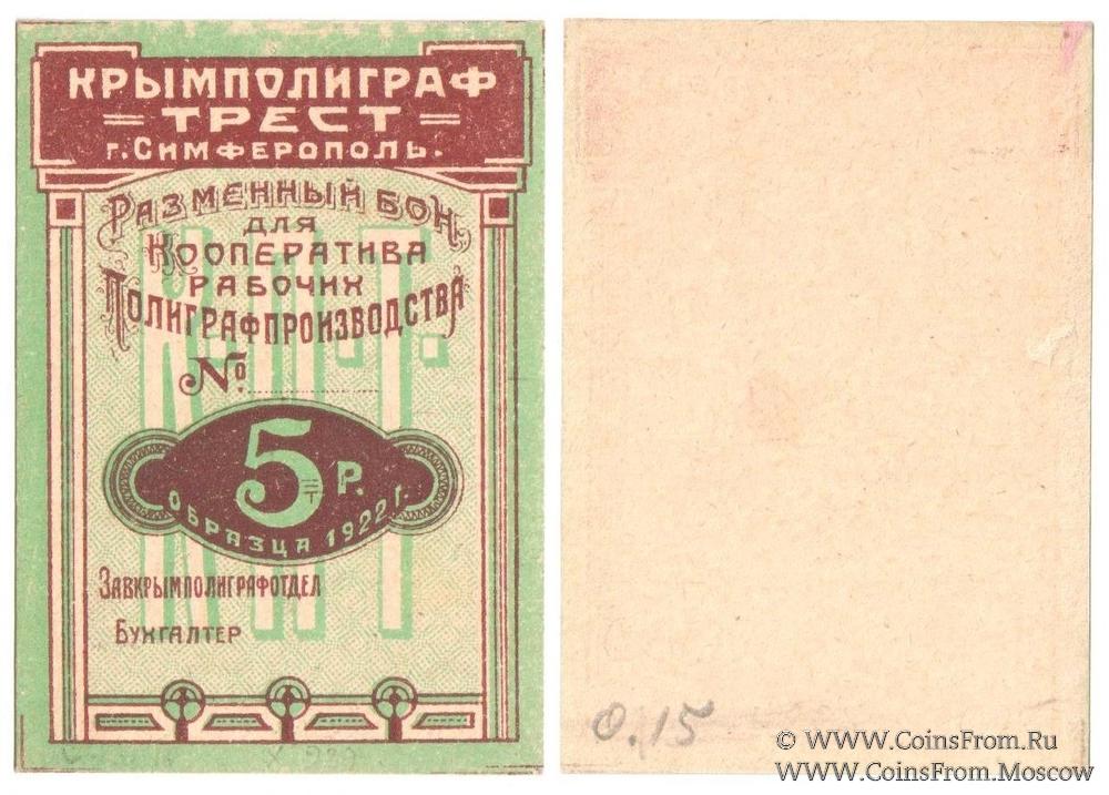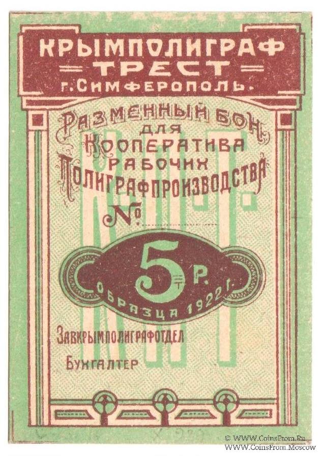 Разменный бон. Бланк. Зеленый фон, рамка и шрифт коричневые. Крымполиграфтрест.