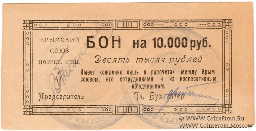 Бон без даты (1921 г.). Оттиск 2-х печатей (44 мм) и подписи на аверсе. Крымский союз потребительских обществ.