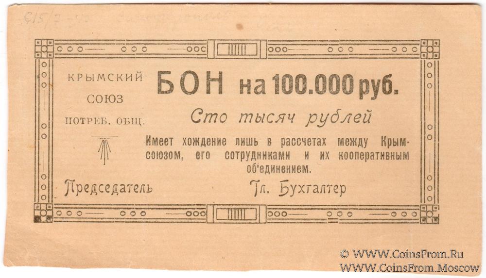 Бон без даты (1921 г.). Бланк. Крымский союз потребительских обществ.