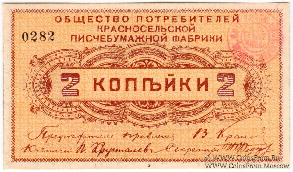Марка без даты. С печатью. Общество потребителей Красносельской писчебумажной фабрики.