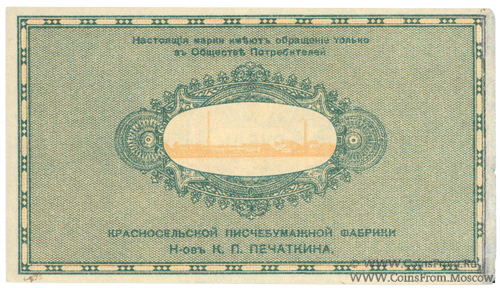 Марка без даты. Общество потребителей Красносельской писчебумажной фабрики.