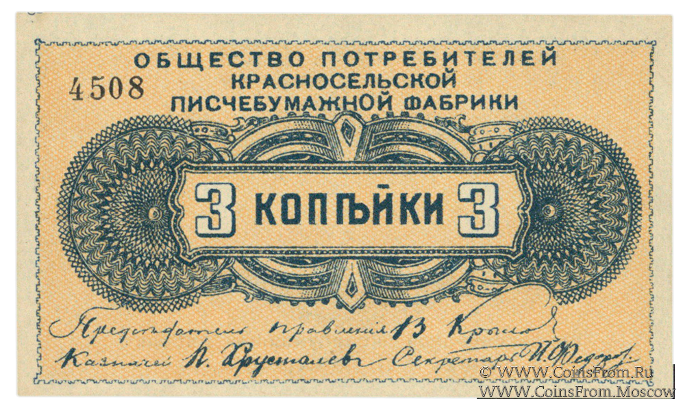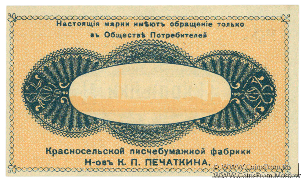 Марка без даты. Общество потребителей Красносельской писчебумажной фабрики.