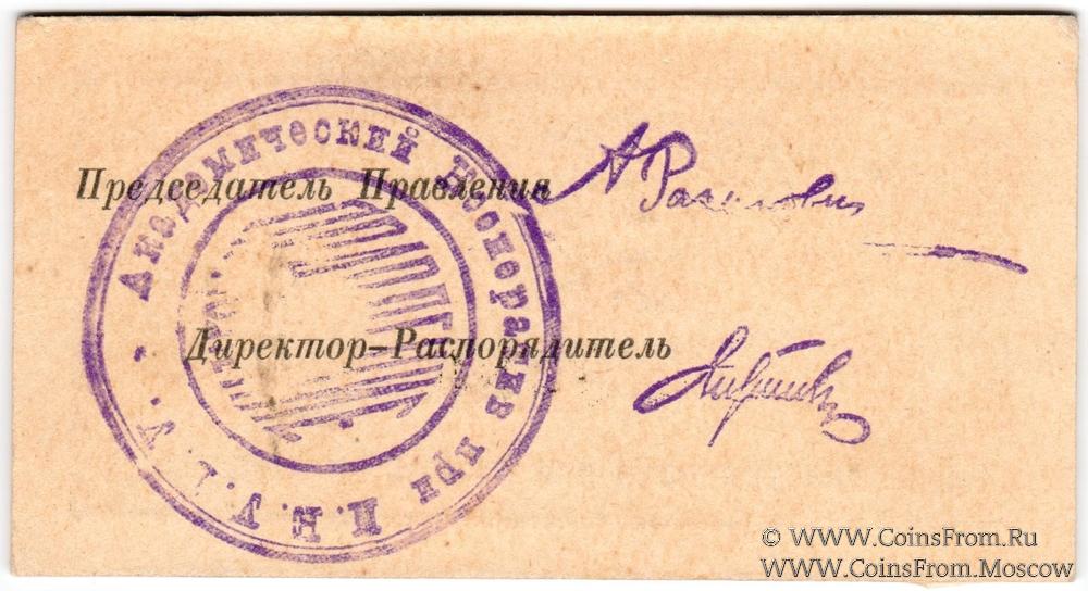 Бон без даты (1923 г.). На реверсе: печать правления, подписи ответственных лиц (факсимиле). Плотный картон белого цвета, 87x46 мм.
