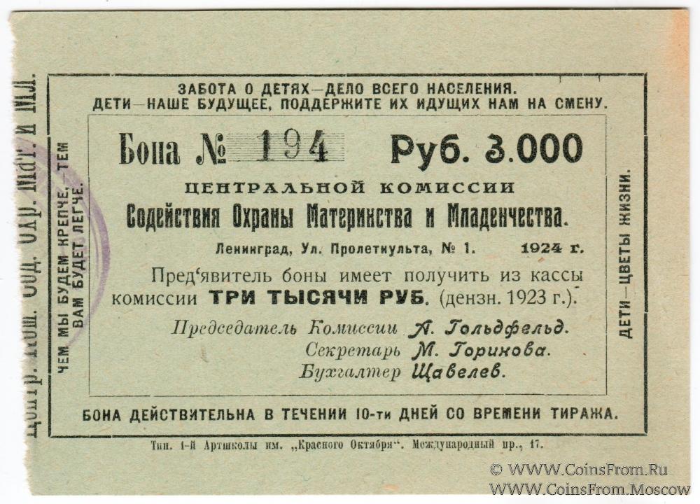 3000 руб 1924 СПб Охр Материнства № 194 РВ
