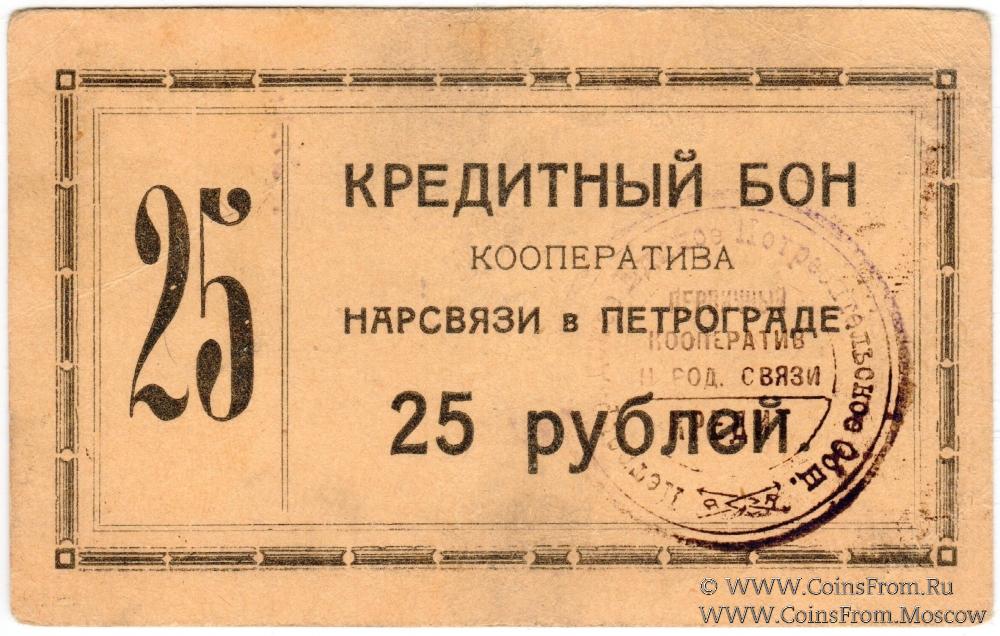 Номер 4-значный, высотой 7 мм. Кредитный бон кооператива НАРСВЯЗИ в Петрограде.