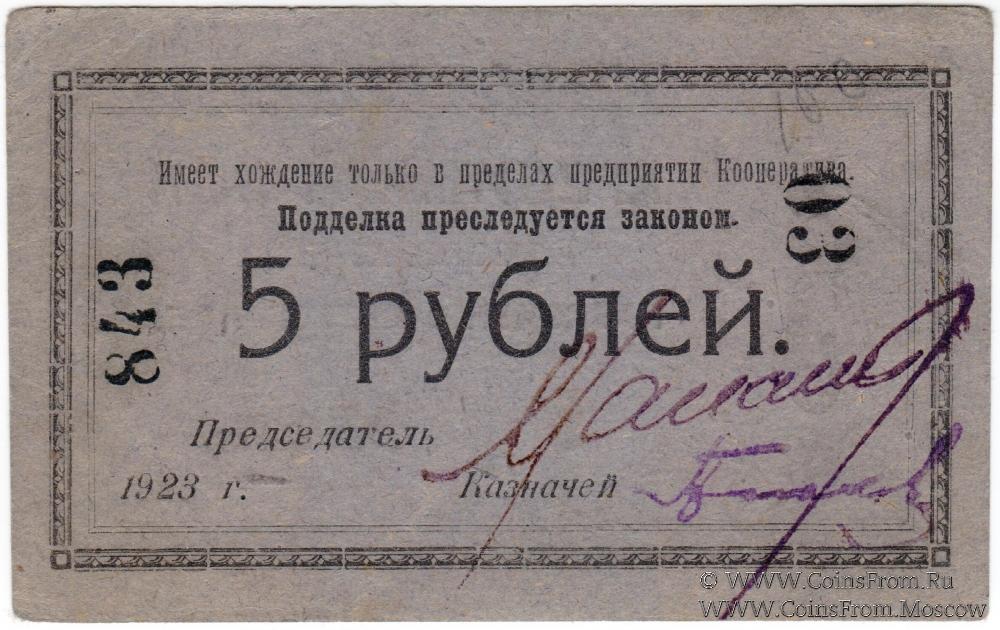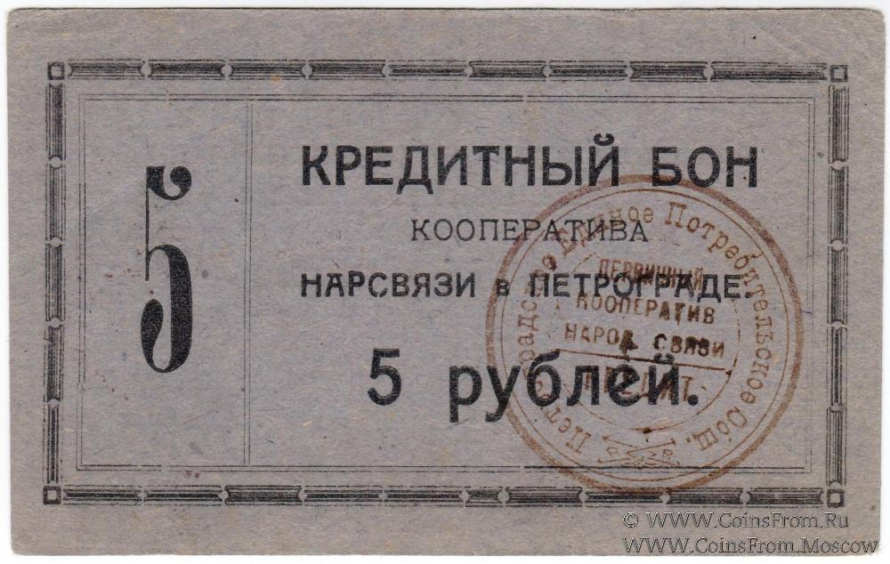 Номер 3-значный, высотой 6 мм. Кредитный бон кооператива НАРСВЯЗИ в Петрограде.