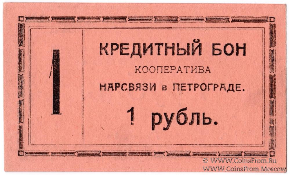 Бланк (без номера, без печати). Кредитный бон кооператива НАРСВЯЗИ в Петрограде.