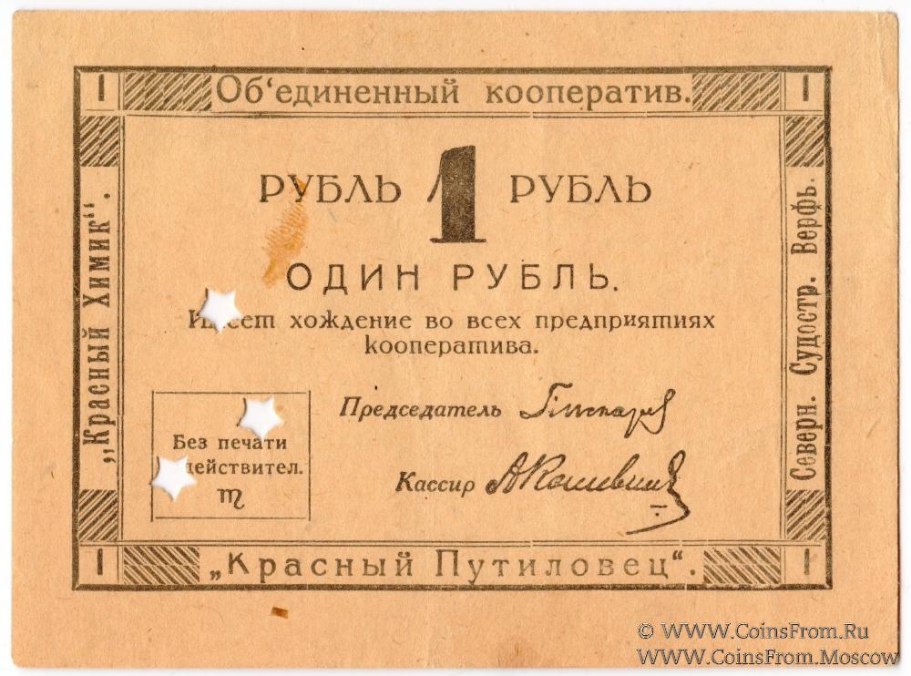 Бланк без даты (1922 г.). Просечка 3 звездочки. Бумага плотная. Объединенный кооператив "Красный Химик", "Красный Путиловец", "Северная Судостроительная Верфь".