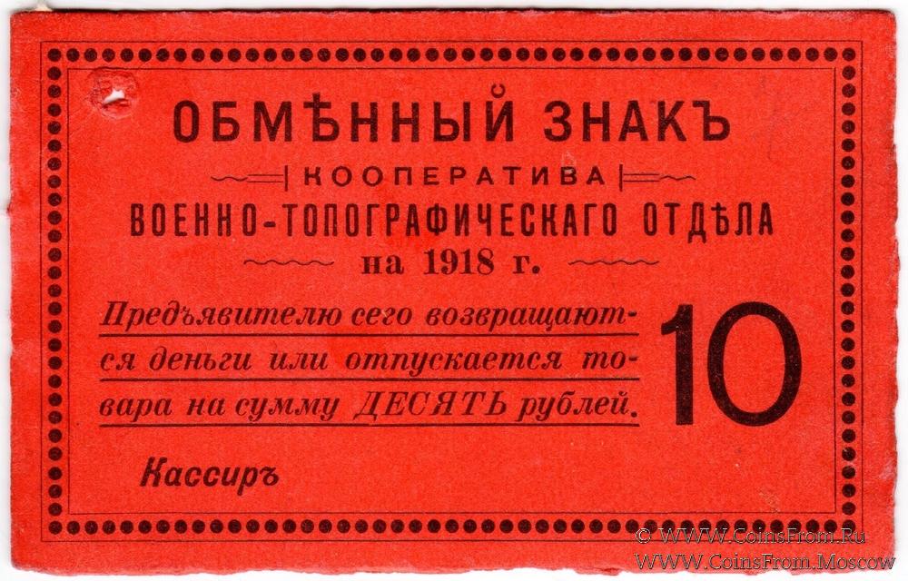 Обменный знак. Тонкий картон. Бланк. Кооператив Военно-топографического отдела.