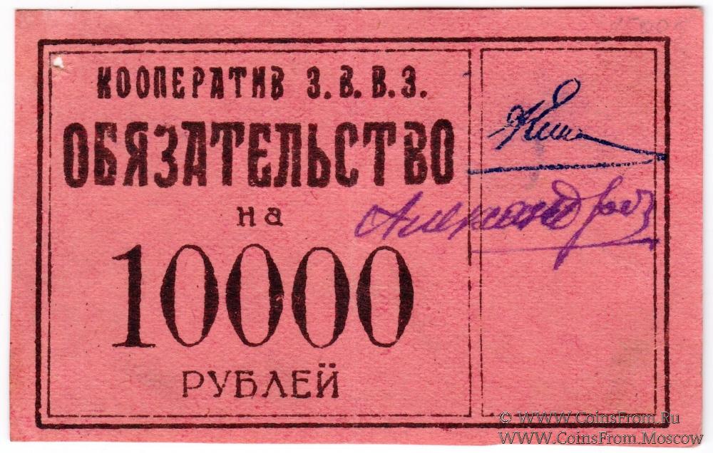 Обязательство без даты. Бумага розовая. Две подписи на аверсе. Кооператив завода "Красногвардеец" военно-врачебных заготовлений (З.В.В.З)