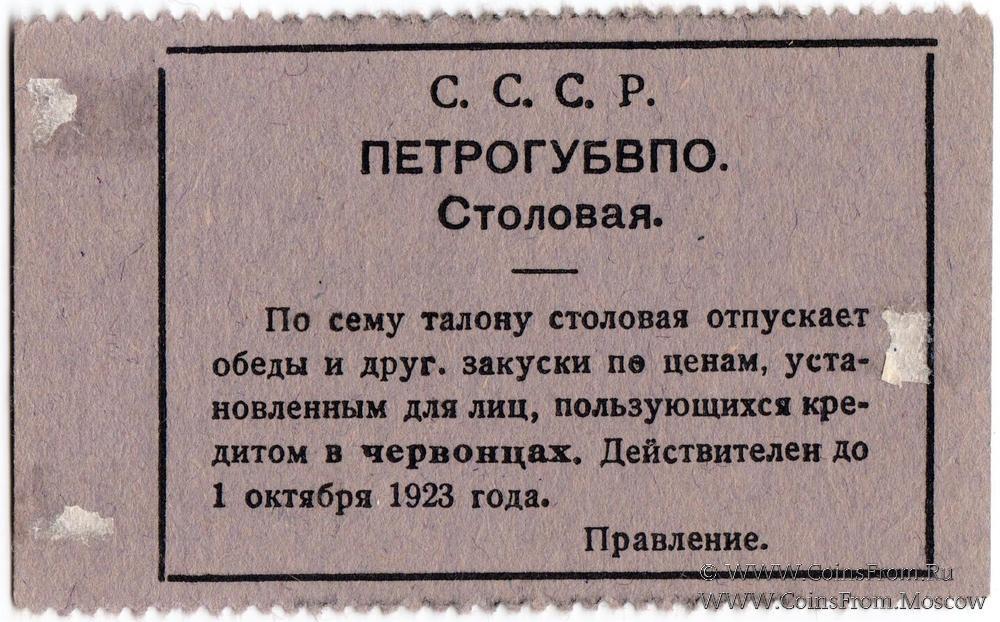 Талон (в червонцах, действителен до 1 октября 1923 г.). Бланк. Фиолетовый.