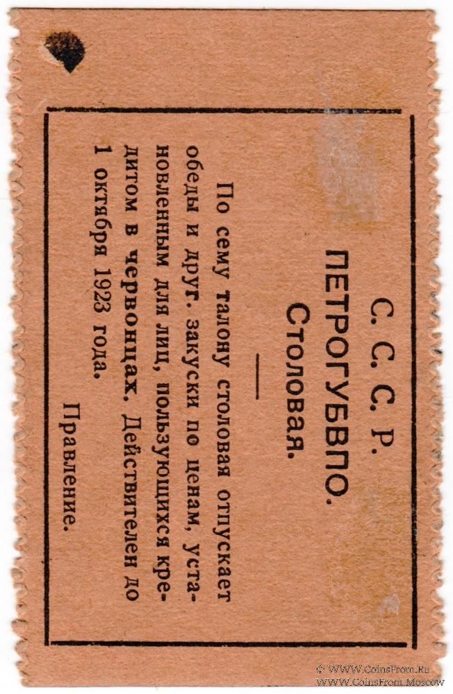 Печать круглая: "Ленинградское Губернское Военно-Потребительское Общество * " (по кругу) / Изображение рукопожатия на фоне пятиконечной звезды (по центру).
