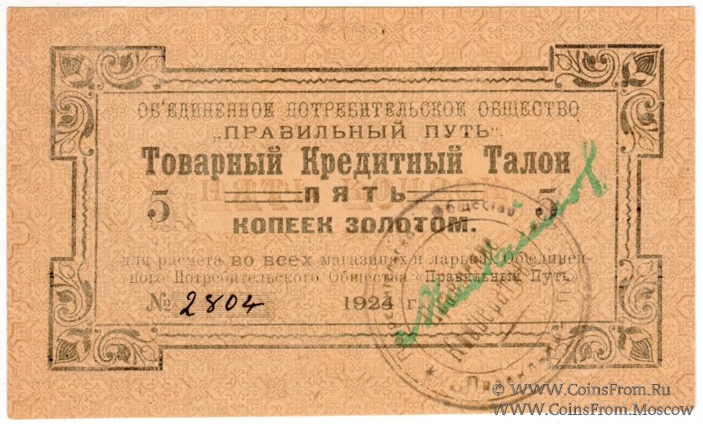 Товарный кредитный талон (золотом). Подпись зеленая. Объединенное потребительское общество "Правильный путь".