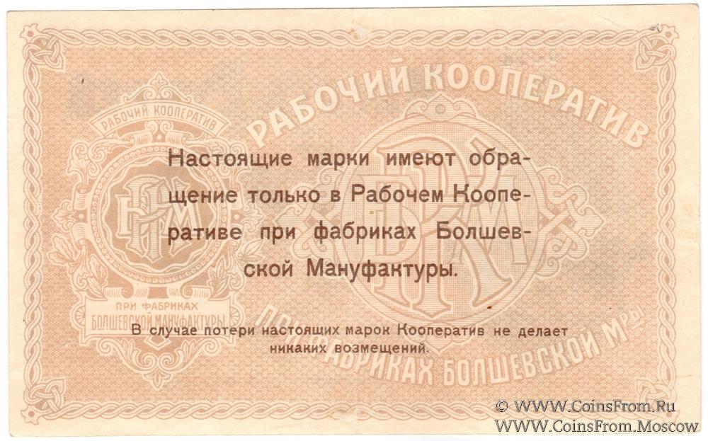 Марка без даты. Рабочей кооператив при фабриках Болшевской Мануфактуры.