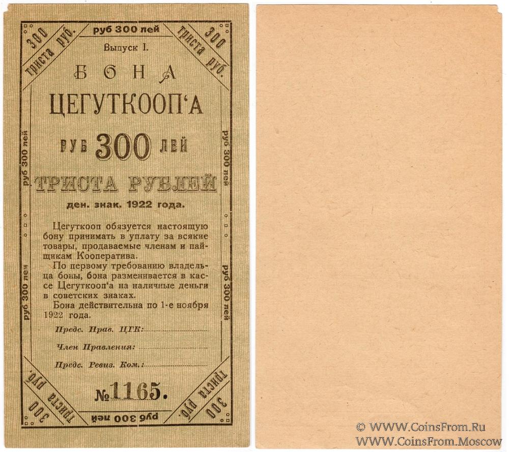 Бона. Бланк. ЦЕГУТКООП (ЦГК).