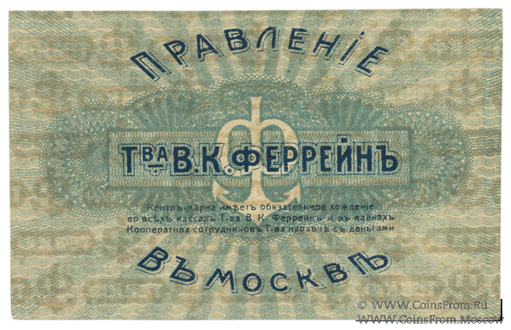 Контрольная марка без даты. Серия Б. Правление Товарищества В.К. Феррейн в Москве.