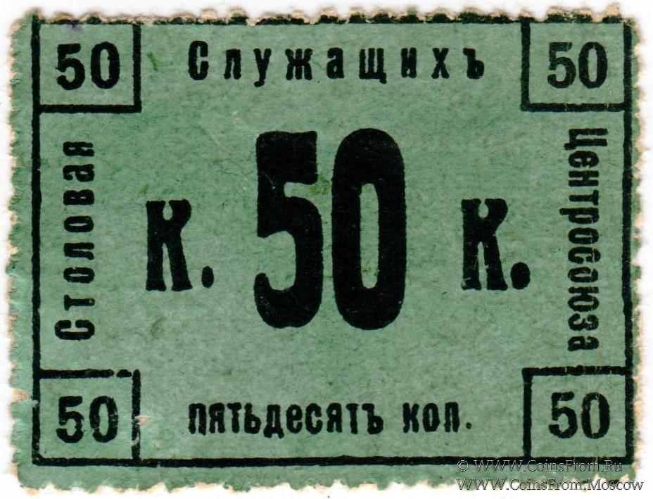 Расчетная марка без даты (1918 г.). Овальная печать на реверсе. Столовая Служащих Центросоюза.
