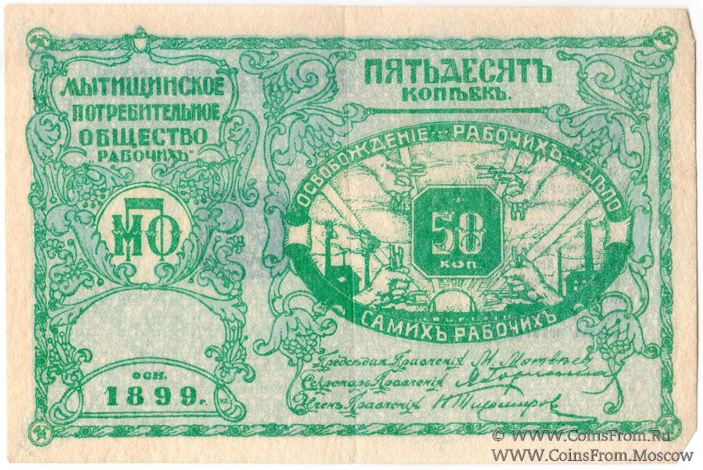 Денежный знак без даты. Мытищинское Потребительское Общество рабочих (МПО).
