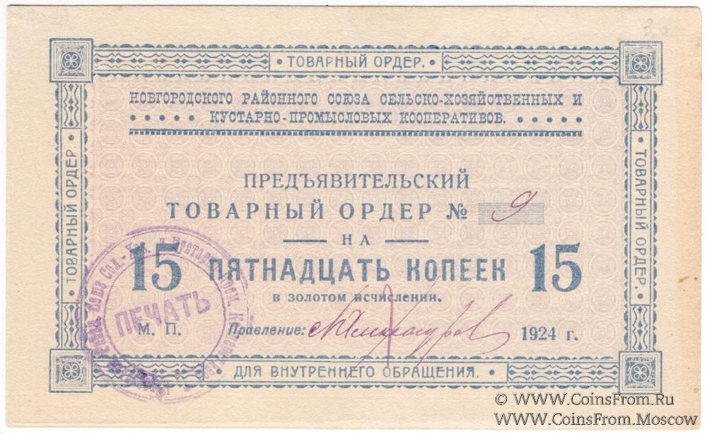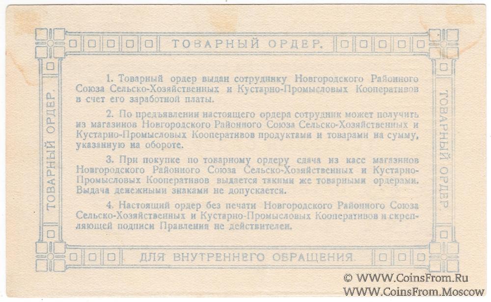 Предъявительский товарный ордер 1924 г. в золотом исчислении. Новгородский Районный Союз сельско-хозяйственных и кустарно-промысловых кооперативов.