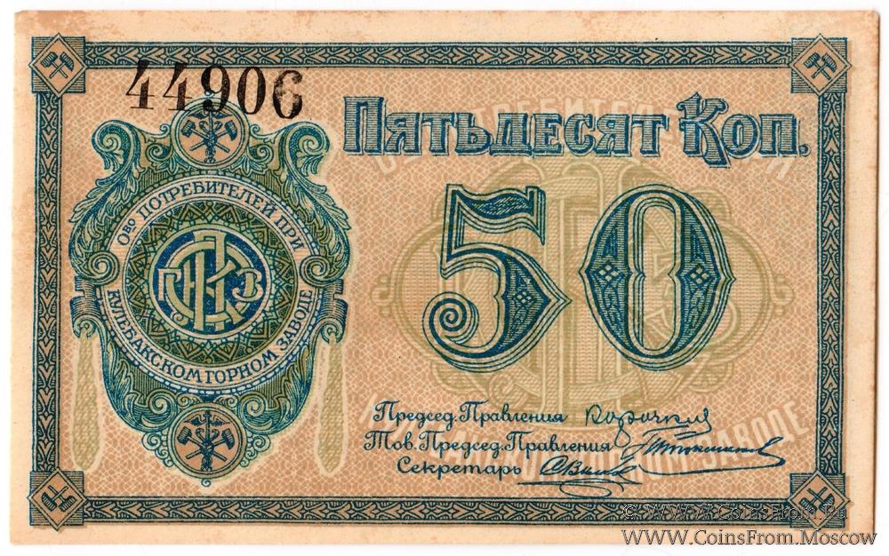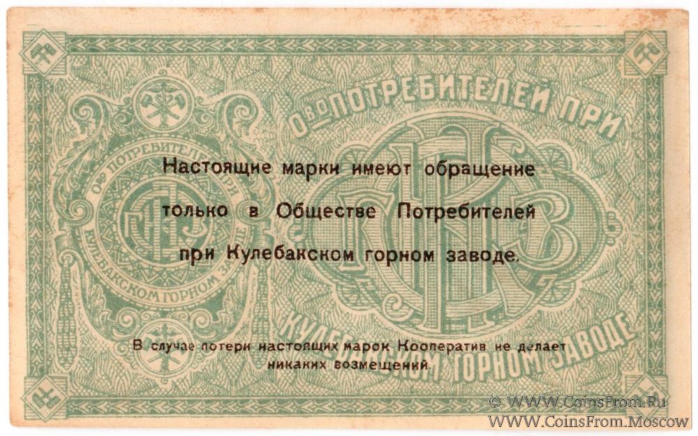 Марка без даты. Номер 5-значный. Общество потребителей при Кулебакском горном заводе.