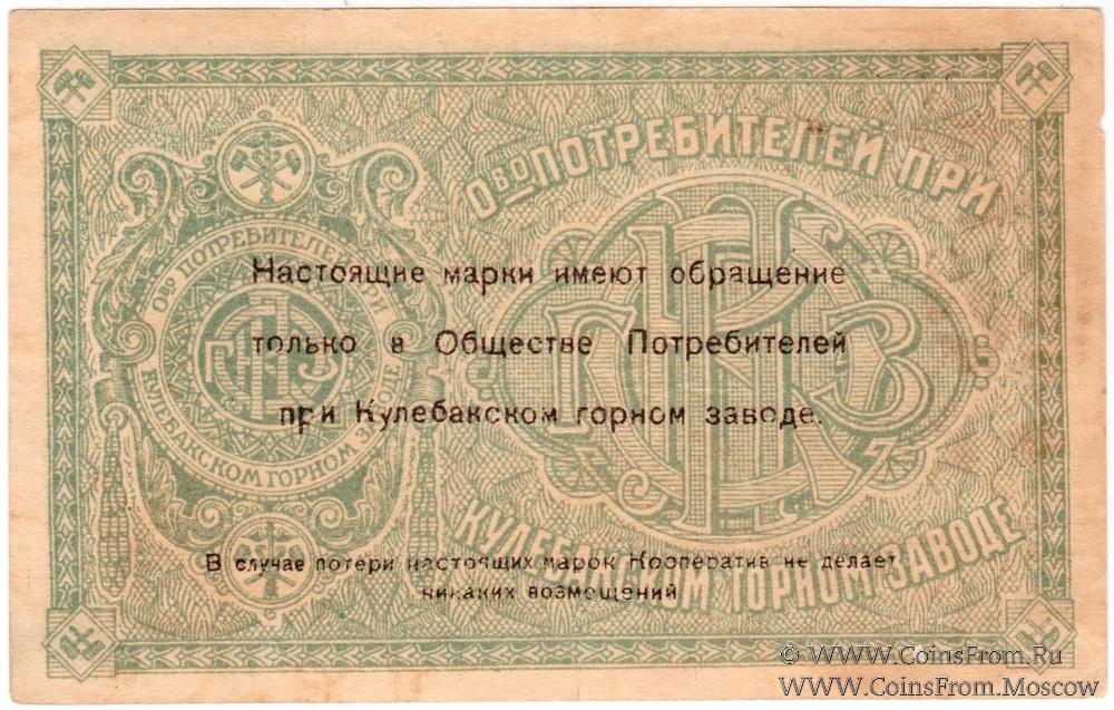 Марка без даты. Номер 4-значный. Общество потребителей при Кулебакском горном заводе.