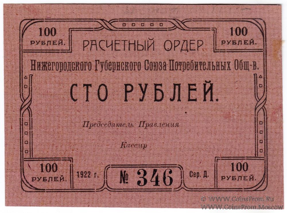 Разменный ордер. Серия Д. Нижегородский Губернский Союз Потребительских Обществ.