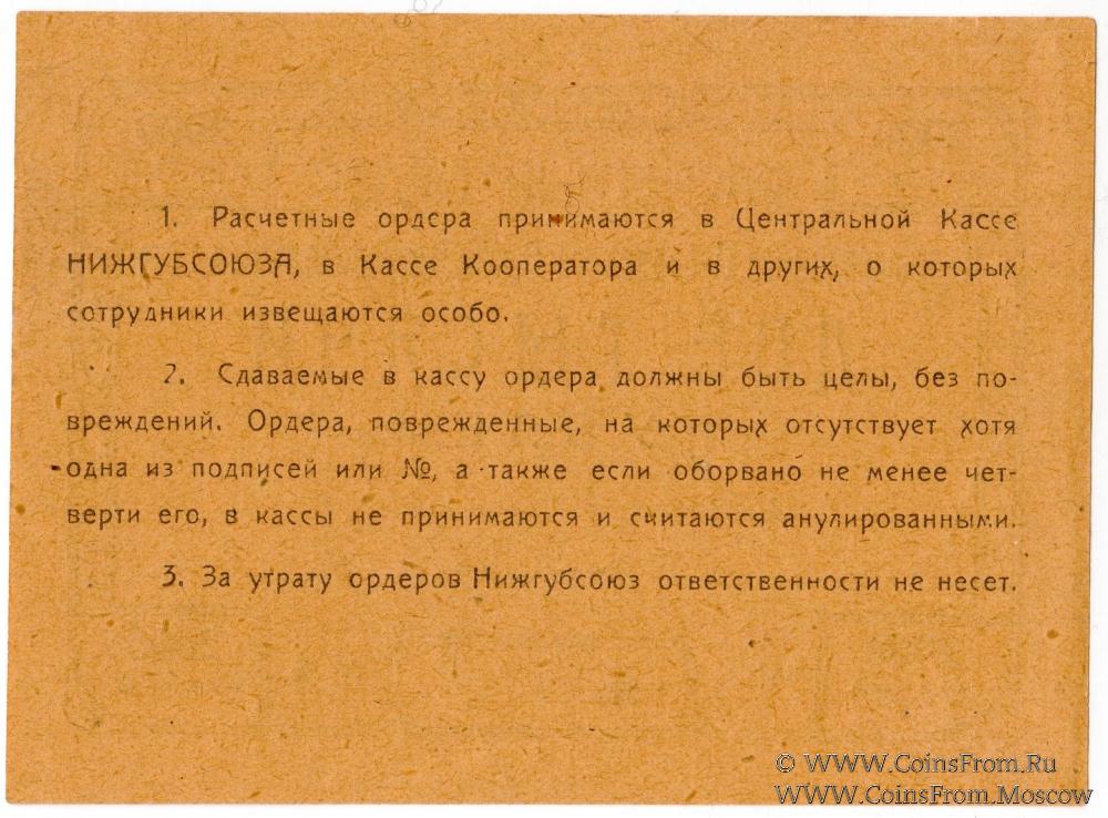 Разменный ордер. Серия И. Нижегородский Губернский Союз Потребительских Обществ.