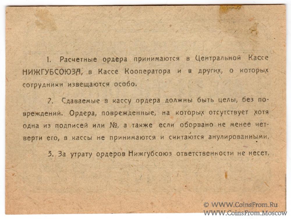 Разменный ордер. Серия К. Нижегородский Губернский Союз Потребительских Обществ.