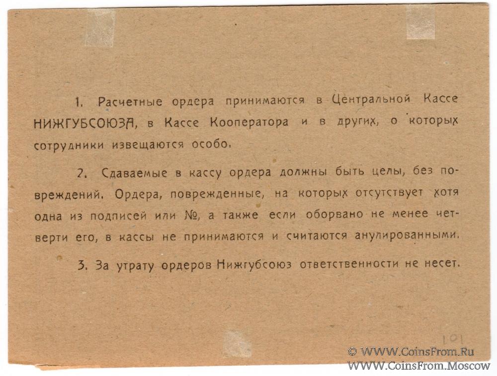 Разменный ордер. Серия Г. Нижегородский Губернский Союз Потребительских Обществ.
