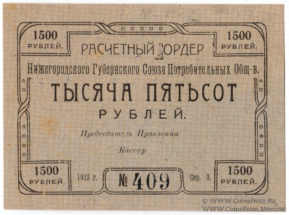 Разменный ордер. Серия З. Нижегородский Губернский Союз Потребительских Обществ.
