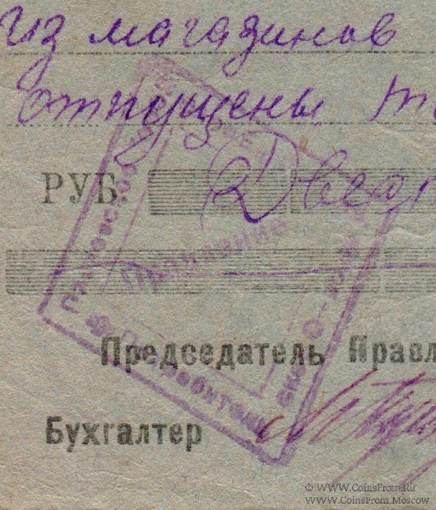 Печать ромбовидная: "Правление" (по центру) / "Павловское Городское Ед. Раб. - Кр. Потребительское О-во " (по периметру).