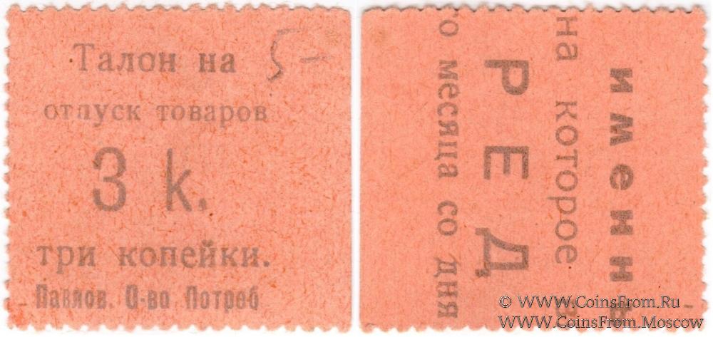 Талон без даты. Оранжевый оттенок. Вариант шрифта: цифра "3" широкая. Павловское Общество потребителей.