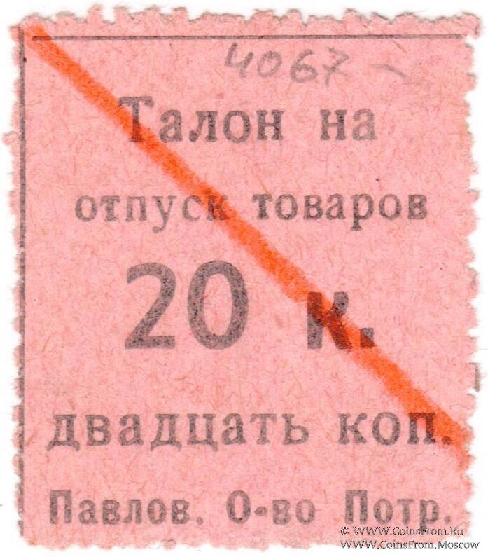 Талон без даты. Павловское Общество потребителей.
