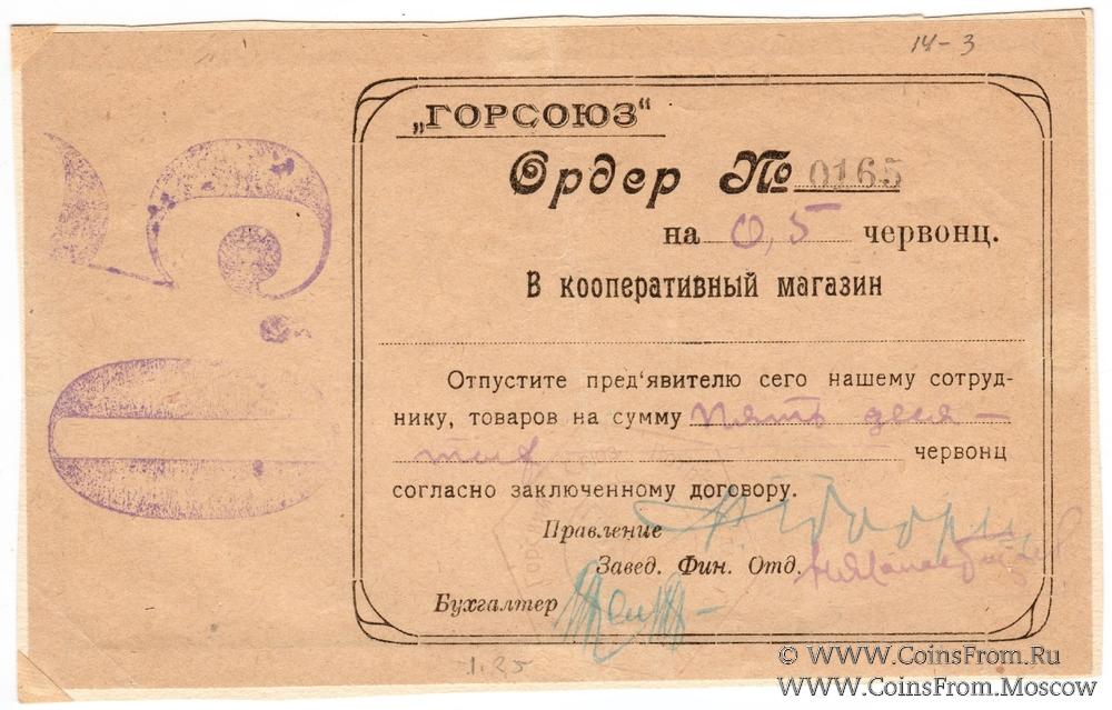 Ордер. Горский Союз потребительских обществ "ГОРСОЮЗ".