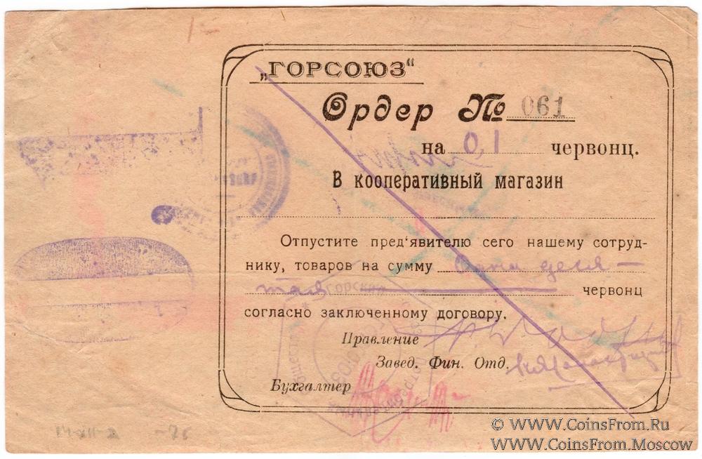 Ордер. Горский Союз потребительских обществ "ГОРСОЮЗ".